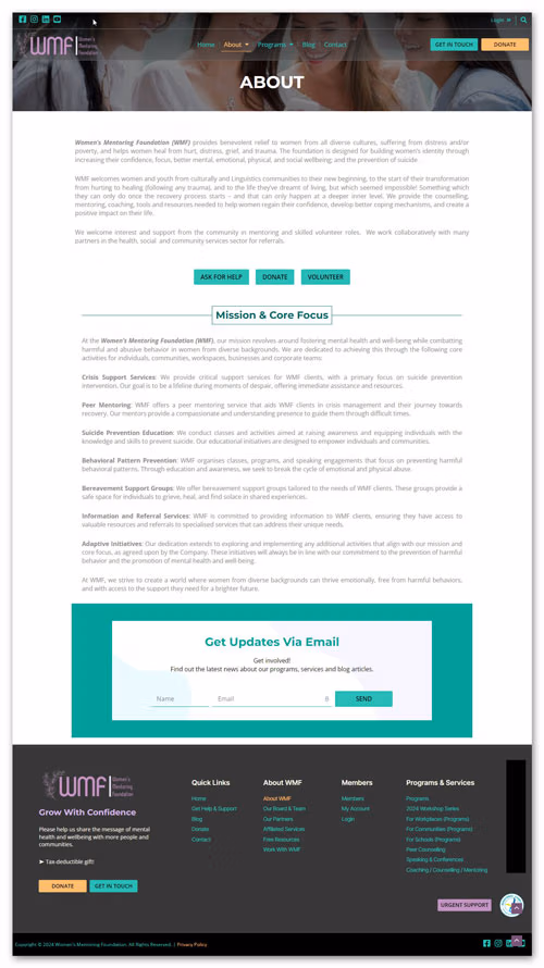 In 2024, we redesigned the WordPress website and logo for Women’s Mentoring Foundation (WMF) based on a discussion brief given to us by Pushpa Vaghela, the founder of WMF.